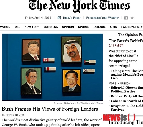 부시 대통령은 ‘세계정상들의 초상화 : 대통령의 개인 외교’라는 타이틀로 자신이 그린 그림을 전시한 바 있는데 이 때 이명박 전 대통령의 초상화도 함께 공개한 바 있습니다.